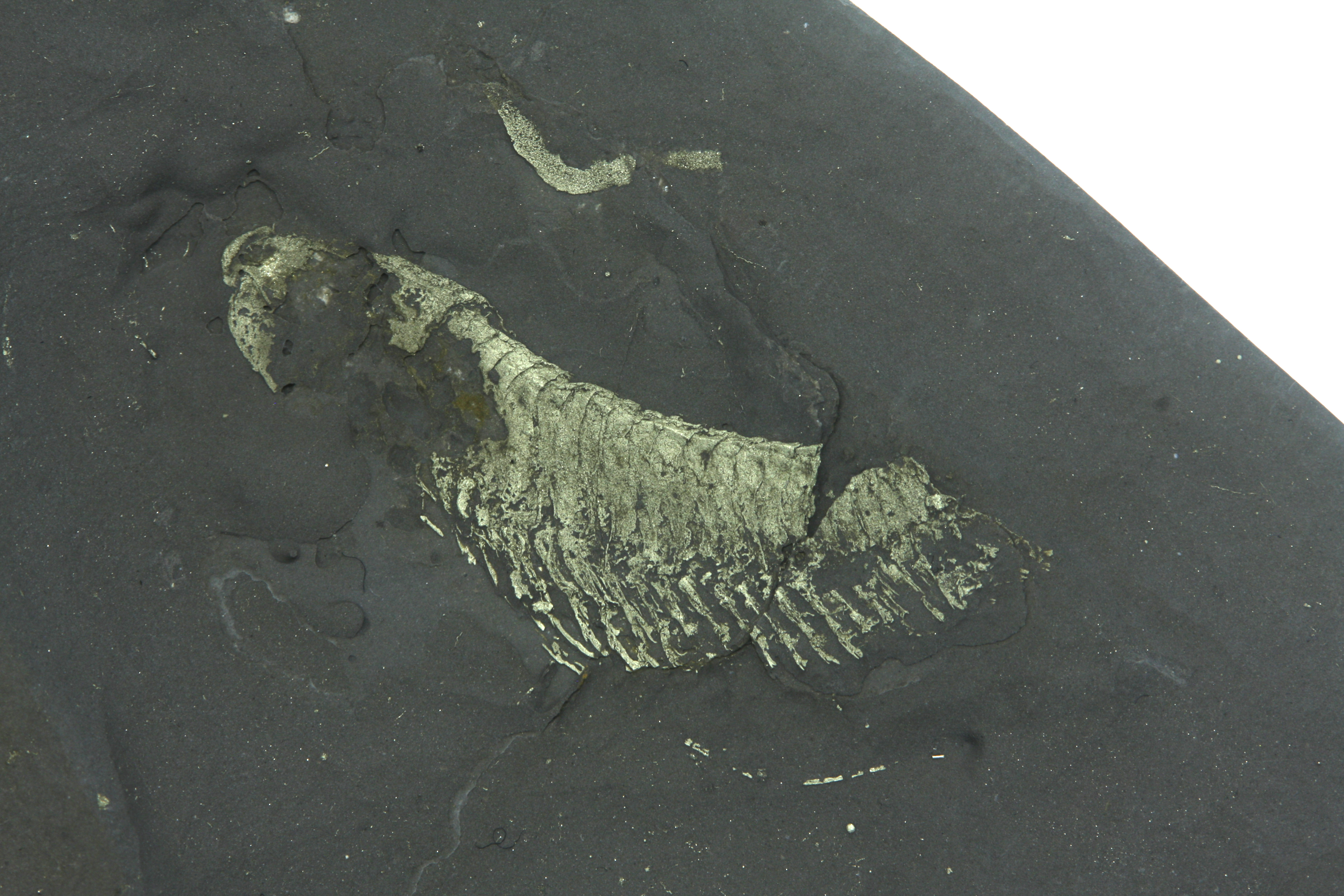 An extremely rare partial non-trilobite arthropod from the historic Beecher Trilobite Bed equivalent horizons. Preserving the head and first half of the arthropod, this specimen has unknown affinities as to its genus, family etc. Only one complete example of this beast is known. The arthropod has a high number of segments with 21 showing on this partial. It is known for its extremely long antennae with elements of it showing here. Examples of non-trilobite arthropods from this unit are exceptionally rare. Nice opportunity to add one to a collection.