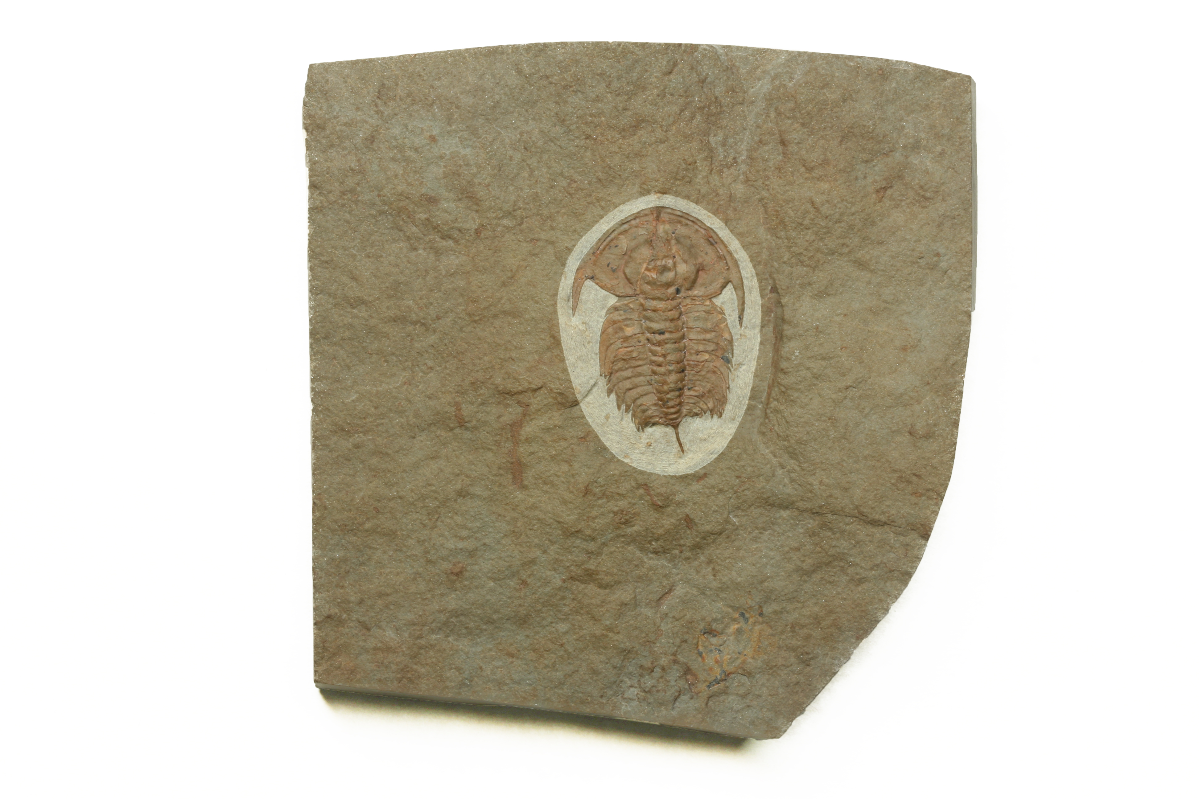 One the oldest complete trilobites ever found in North America, and this particular specimen is perhaps the nicest single specimen we’ve seen! This Eofallotaspis is quite large relatively speaking, at 3.6cm. It also differs greatly from other Eofallotaspis in nearby outcrops as it is found sporting a small axial spine, likely emerging from the last segment before the button-like pygidium.