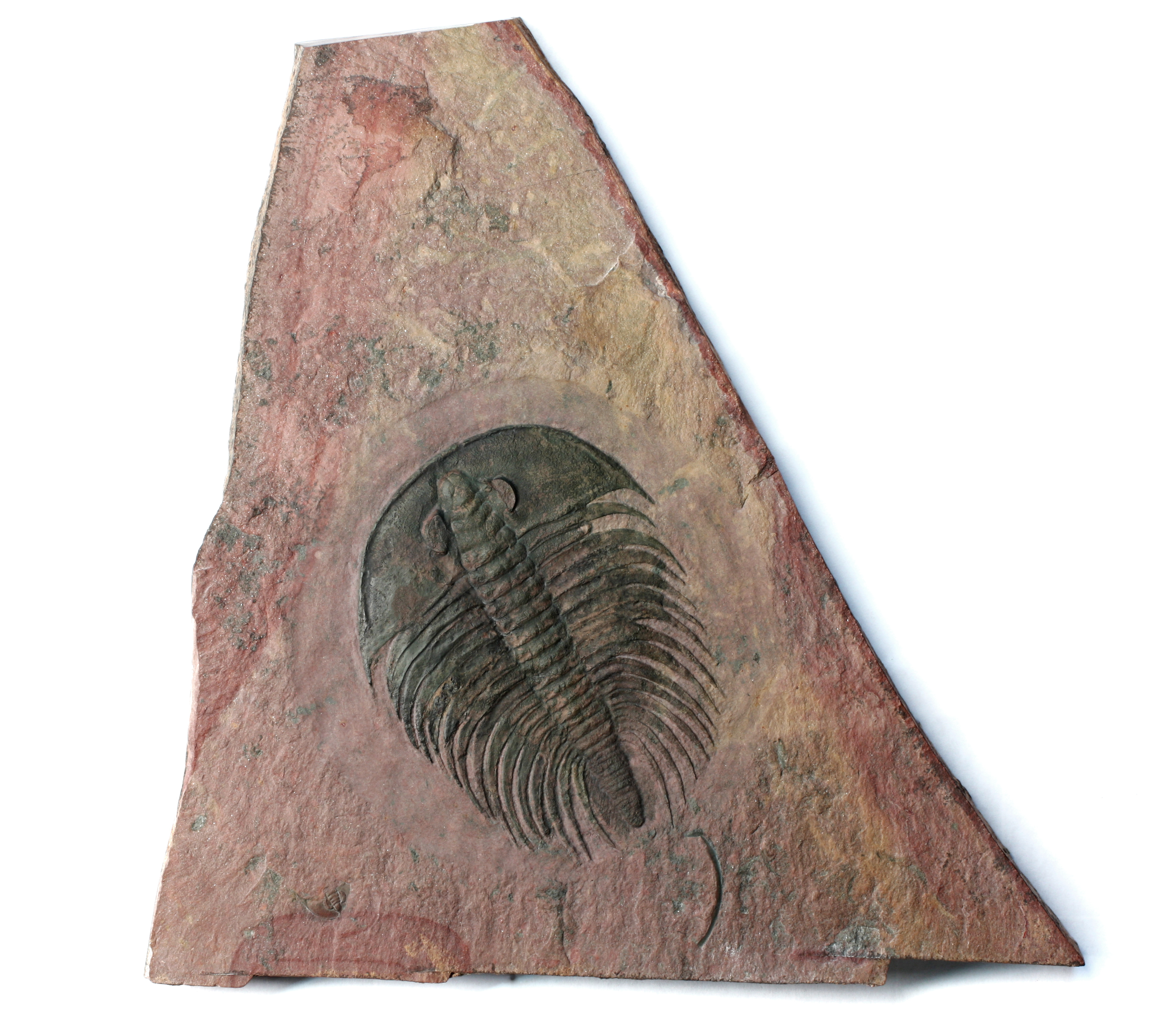Very large 10.5 cm (4.15 inches) Nevadia weeksi trilobite with complete opistothorax. Nevadia of this size and quality are extremely rare and highly sought after, with this specimen easily being one of the finest examples of the species. Nevadia are one of the earliest trilobites, appearing in the 3rd stage of the Lower Cambrian (520 million years ago) on the southern coast of the Laurentian craton. The species is now primarily known from remote mountains of western Nevada on the western most fringes of the Great Basin.
