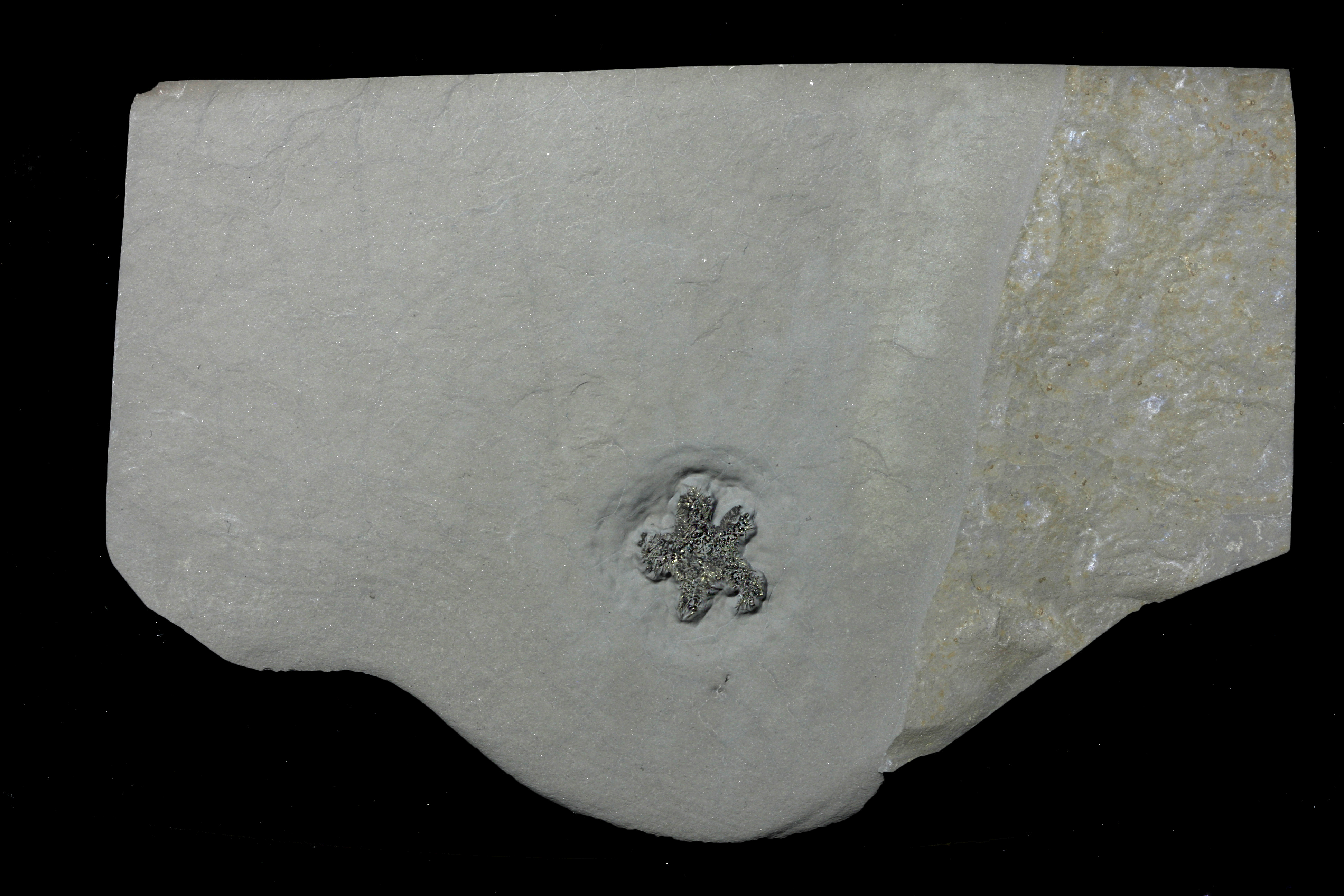 A beautiful example of a pyritized brittle star from the Late Ordovician, Frankfort Shale, New York.