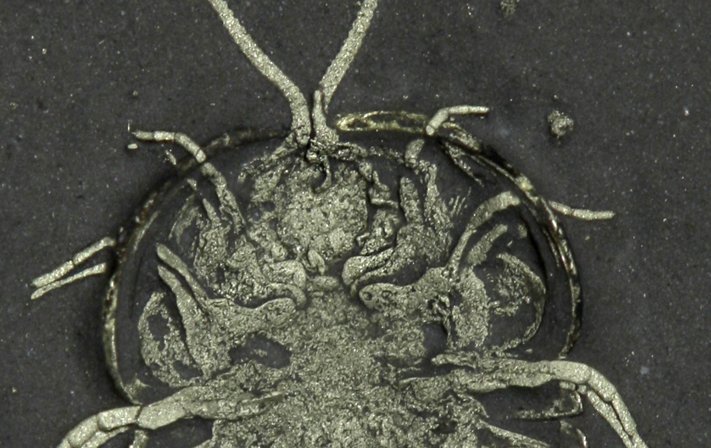 This is one of the finest examples of ventral soft tissue anatomy on a trilobite. ย The plate features two Triarthrus eatoni trilobites, both lying upside down in ventral pose. ย While each of the individual trilobites are exceptional with preserved legs, antennae and other anatomy, one of these trilobites is truly incredible.